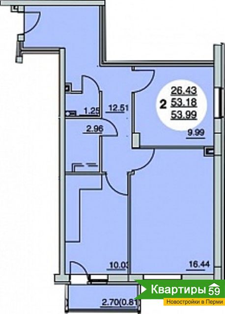 | Площадь (общ, жил): 53, 26 кв.м |